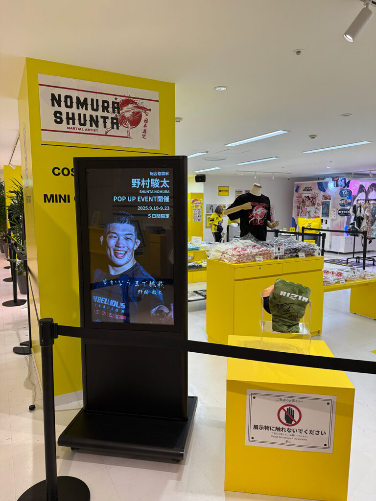 始まりました!野村駿太 POPUP STORE WITH KCOMPANY 本日9月19日(金)から9月23日(火)まで、ME TOKYO SHIBUYA Limitedにて、野村駿太 POPUP STORE WITH KCOMPANYが開催されています。 会場に潜入してきました。 超RIZIN.4 真夏の喧嘩祭り 祝勝会 POP UP EVENT 報告 関連記事 フロリダ活動報告(1) 2025年10月9日 『ゆるバース2025』決選投票イベント 2025年9月29日 道場 祝勝会 2025年9月26日 POP UP EVENT 報告 2025年9月23日 超RIZIN.4 真夏の喧嘩祭り 祝勝会 2025年9月6日 RIZINビーチハウス 子供海の家 2025年8月26日 1DAY SHOP MANAGER 報告 2025年8月25日 株式会社武田設備様 祝勝会 2025年8月12日